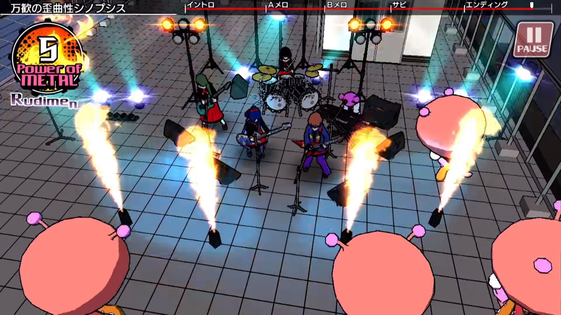 On the other hand, you are dealing with how you make a band and how you deal with a big problems within the band. In this case, for the high school girl band, it is the pretty big problem of an alien invasion. There are some dialogue choices which affect the game in terms of the main story a minor way. There are a few different play modes in the story, such as not hearing the metronome or only using one hand.