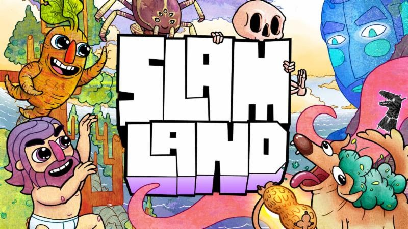 Slam Land is a fast-paced, chaotic brawler where a bizarre blue giant instructs competitors to dunk one another into hoops for his amusement. Players must grapple, lunge, and dodge their way around the stages (and each other) as they try to slam their opponents into a variety of goals ranging from tree hollows to gaping maws.