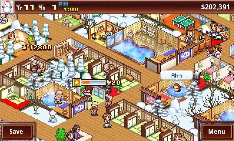 In case you missed the original announcement, Game Dev Story was previously released on mobile in 2010. It allows you build and manage your own video game company as you work your way up from a small start-up studio to an industry giant. In Hot Springs Story – first released in 2011 – you develop a resort while juggling the needs of customers. To gain more wealthy clientele you’ll need to impress critics by enhancing your resort and managing staff at the same time.