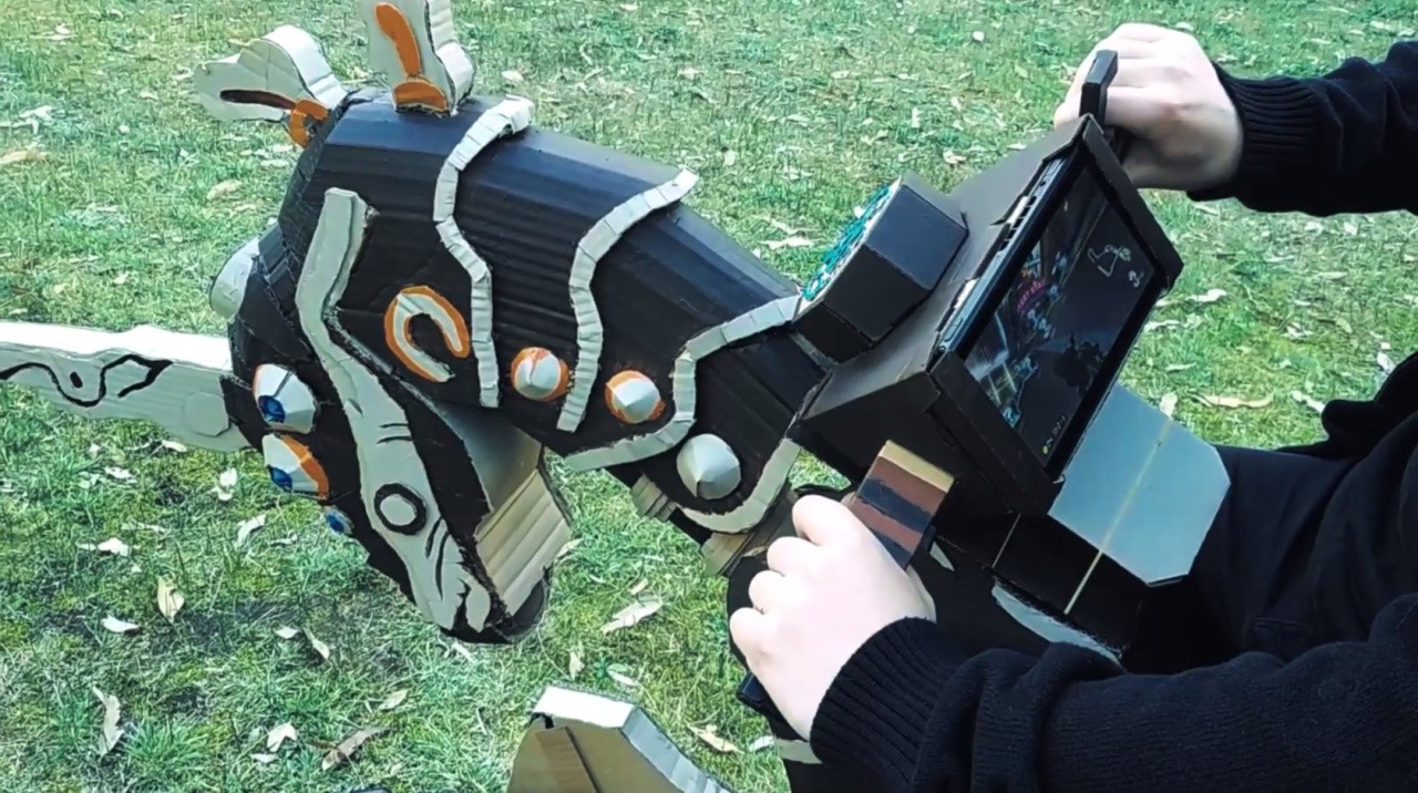 Entrant’s description: “I am submitting a custom decorated Motorbike Joy-Con. The Toy-Con is a 1:1 replica of the Master Cycle Zero from The Legend of Zelda: Breath of the Wild. The player can sit on the bike and play Mario Kart 8 Deluxe using the base functionality of the Motorbike Toy-Con. I was inspired to build it when I saw both the Master Cycle Zero and Labo Support added to Mario Kart 8 Deluxe. Thanks to the sturdy frame, the Toy-Con can be ridden, and the player can play Mario Kart 8 in Labo mode. In order to get the scale of the bike right, I took screenshots from my Switch and blew them up to a 1:1 scale. From there I cut out pieces and used them as reference art, similarly to how real 3D models are made for games. The whole process took over 100 hours to build, and I loved every second of it.”