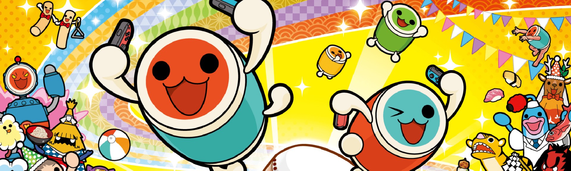 It’s rhythm game 101, then. Series mascots Don and Katsu provide the pure ‘vanilla’ experience, but a host of other playable characters offer ‘session skills’; they might fill the soul gauge at a faster rate or make the timing window for strikes more generous. There’s a whole bunch of characters to unlock, and the Switch gets saviour-of-the-moment, Kirby, and a pink Splatoon squid, too.