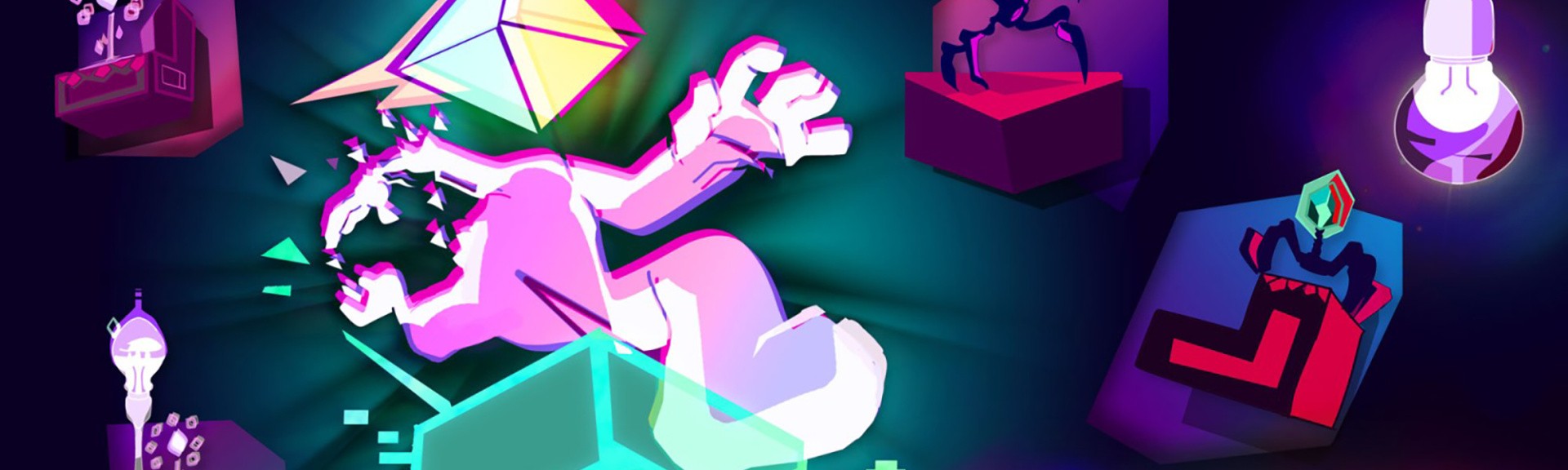 Considering every enemy movement is loosely tied to the beat of the track pumping away in the background, the setup of each vertical level has been purposefully built to follow a particular rhythm. With so many games opting for procedural generation, Octahedron’s handcrafted levels are finely tuned so that every element has its place in the mix. Using your conjured platform, you can attempt to complete each level by destroying light bulbs, which explode with a neon boom and then rise to form flowers on a platform above. There are even floating triangles that explode with colour and light when you find a way to reach them. These contribute to a final score that will eventually unlock further worlds to explore.