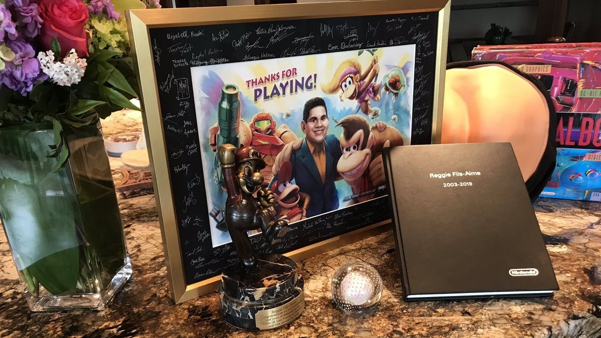 Early this morning, we shared with you a tweet from ex-Nintendo of America President, Reggie Fils-Aimé. The tweet gave us a look at some of his retirement gifts, which included a Virtual Boy, a lovely notebook, and a giant plastic bottom (yeah, seriously) but it also featured a gorgeous piece of artwork from Retro Studios.
