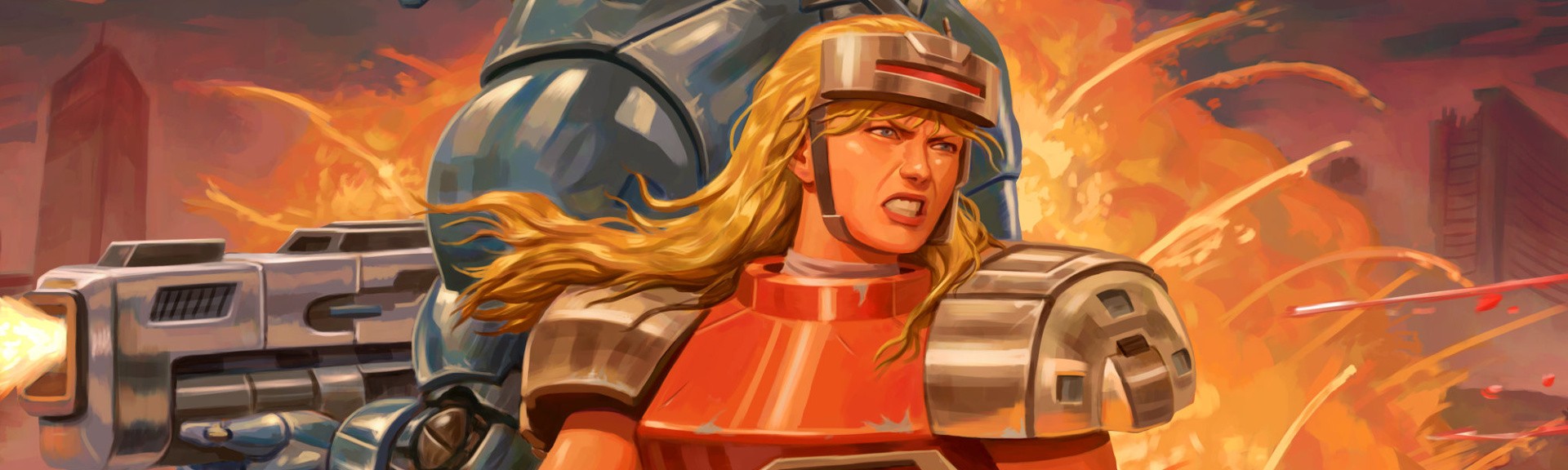 Blazing Chrome doesn’t just play like classic Contra titles, but it fully looks the part too. It really nails the apocalyptic theme that’s so synonymous with ’80s movies and games; backgrounds are made up of deep red skies and burning skyscrapers, and character designs take direct inspiration from franchises like Terminator and Aliens. Its overall look and feel has a distinctly serious tone, but hints of playfulness are scattered throughout to keep things from feeling a bit too bleak, such as NPCs flying past in ships yelling “hey bro” at your character.