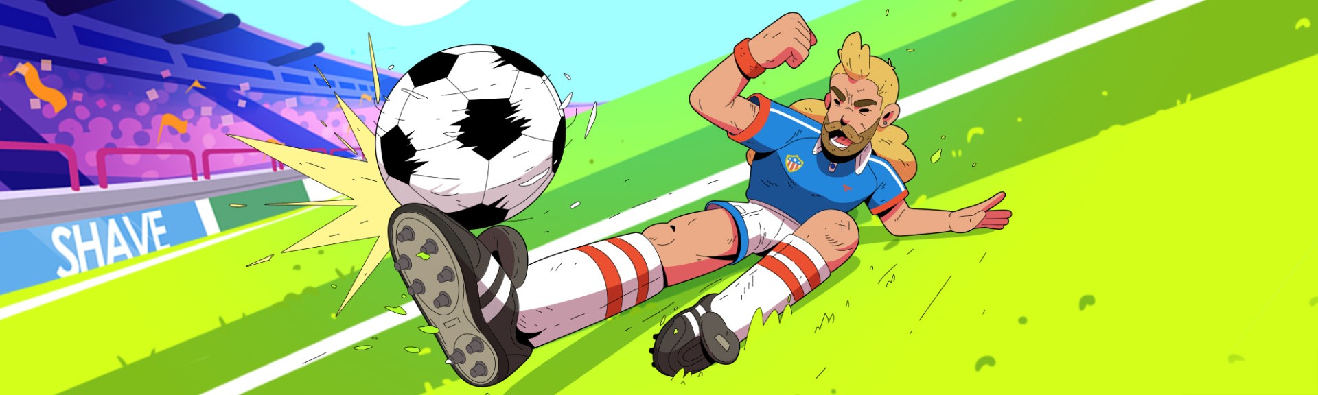 Set in the year 1992, Golazo! lets you choose from 51 international teams and take part in one of three modes: Quick Match, International Cup and World League (which is just a 20-team league format). The latter two are solo affairs only, which is a shame: we’d have loved the option to play them in co-op with a friend. Winning a game in any mode will earn you coins, which can be spent in the game’s shop on new kits, balls, goal celebrations, boots (or “snickers”, as the announcer mispronounces it) and accessories, including the frankly terrifying option to kit out your entire squad in hockey masks.