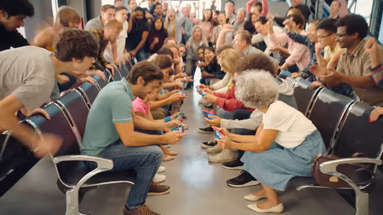 While normally delays are a nightmare with confused people becoming angry people when airline staff turn up after 5 hours offering a £2.50 W.H. Smiths coupon for as an apology for the inconvenience, it seems that everyone in the trailer above is equipped with their own Nintendo Switch. Cut to scenes of extreme jubilation as the crowd get into the competition with Mobius and Mushroom Kingdom competitors.