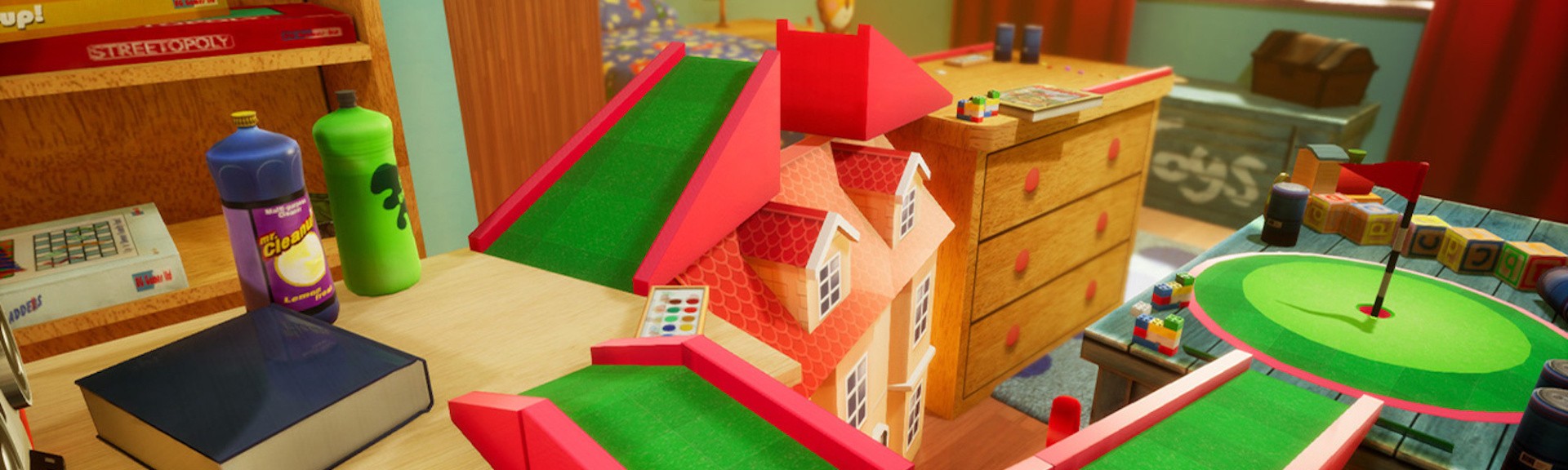 Taking place within – you guessed it – a house, this is mini-golf in a very literal sense. You have a choice of playing within the lounge, bedroom, kitchen, attic, and garage. All areas feature everyday objects that act as obstacles on the course, so naturally, the kitchen is full of pots, pans, and spatulas, whereas the attic plays host to hammers, pots of paint, and old televisions. The objects are placed in very sporadic positions within the levels, and whilst some courses are laid out very deliberately with obstacles that allow you to bounce your ball around strategically towards the goal, many more courses are ruined by seemingly random placement of items that scupper your progress at every corner.