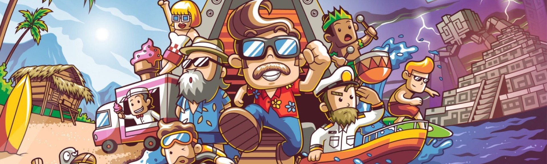 The islands themselves are fun little recreations of real-life locations. You’ve got the hedonistic, beach party setting of Ybiza (complete with blocky little revellers largin’ it on the dancefloor and passed out on deckchairs), the dark volcanic sands of Fijy and the drum-beating hula-surf paradise of Hawayy. There’s Santoryn – with its stark white Greek-style houses and smartly-attired jazz lounges – and Leysure Island, the tacky tourist heart of the locations on offer.