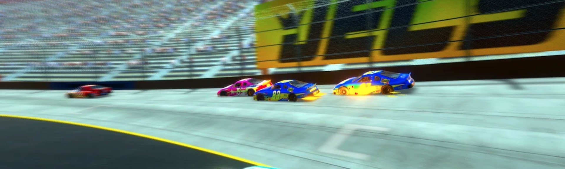 Let’s (rolling) start with the bad: 60FPS performance doesn’t make it to the grid. The game moves along at (mostly) 30FPS in both docked and portable, with a few dips here and there during massive pileups. Considering the overall plainness of the art assets, one would assume that twenty cars racing around oval tracks would make 60FPS a feasible goal, but that isn’t the case here. It’s not a deal-breaker, but still disappointing.