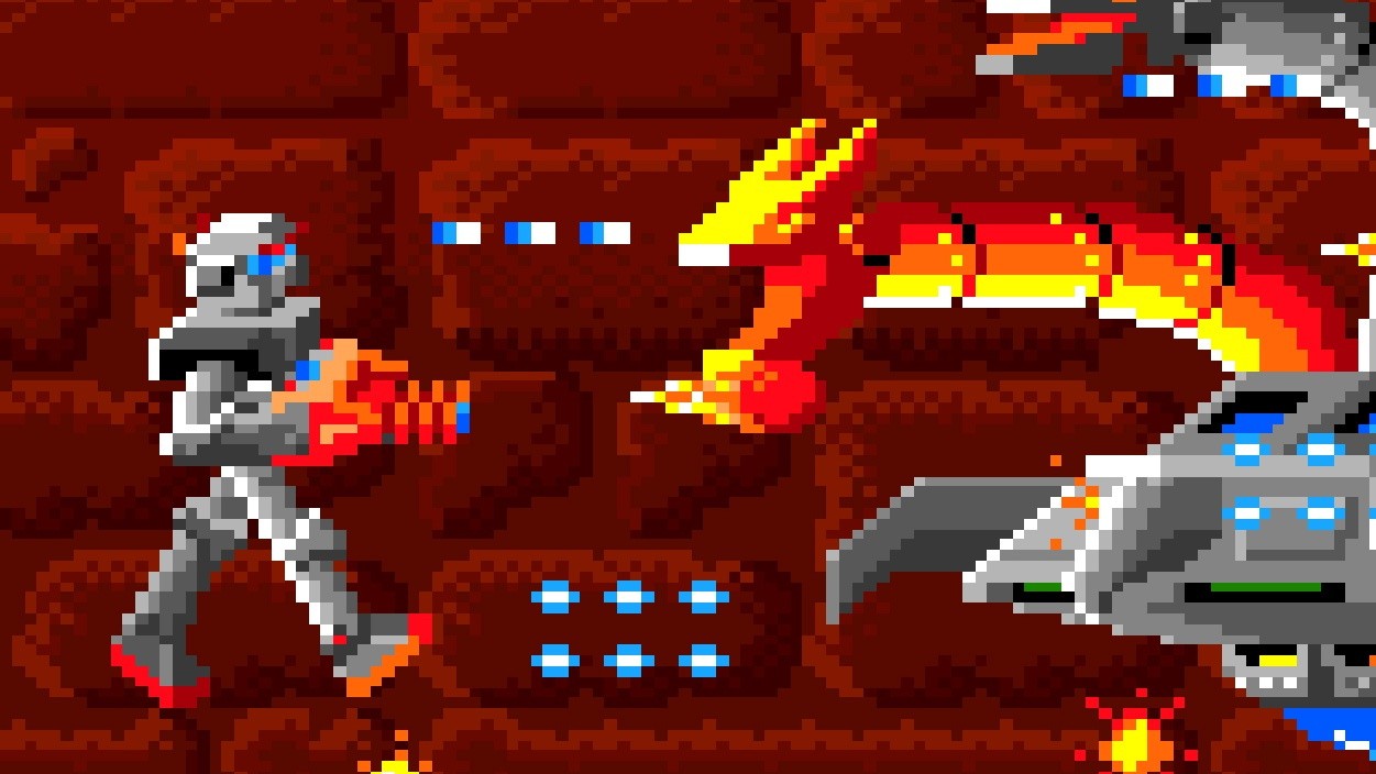 The player can power up by combining with the parts falling on the stage in order to defeat the Strange Mechanism Babylon. With 4 different stages, aboveground and underground stages not only vary in their appearance, but offer different ways to attack!