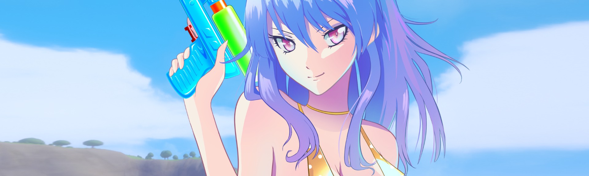 Waifu Impact sees players dropped onto glorious ‘Waifu Island’, a place visited nightly in the dreams of many; a tropical paradise hosting cute girls running around shooting each other with water guns. It is the basic premise that we saw in Senran Kagura: Peach Beach Splash, but with stripped-back features. Instead of different teams vying for control of the arena, it is a free-for-all against the AI-controlled enemies who all look and play the exact same. Instead of the barely contained chaos, with action coming at you from every angle — the things that make other arena shooters fun to play — this feels like a slog.