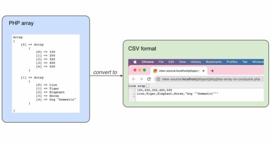 This tutorial is to convert a PHP array to a CSV file or format. It has two examples of implementing this conversion.