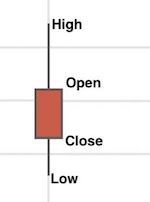 The candlestick chart represents the price movement between Open, High, Low, and Close points.