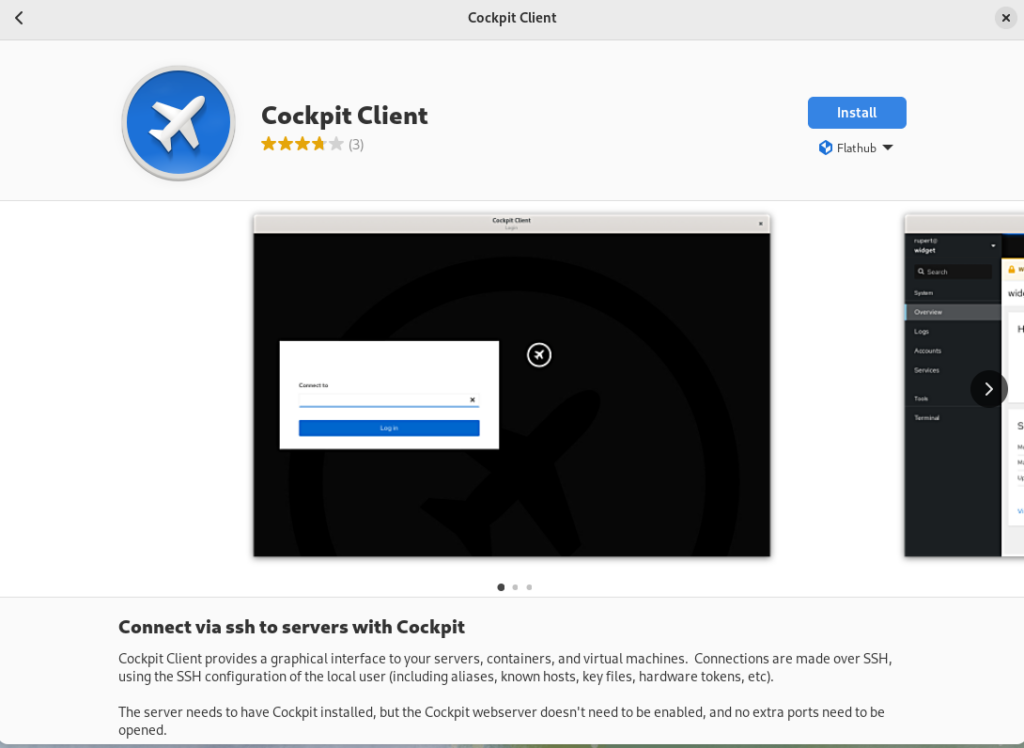 - You can use the Cockpit Client Flatpak, which will connect to systems over SSH.