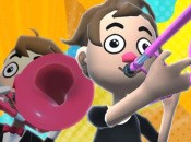 There is a choice of four different input methods but none of them gives an easy ride. The default is to hold one Joy-Con and tilt it with your wrist to move the trombone slide, operating the mouth and lungs by pressing any one of the four shoulder buttons across your two Joy-Cons. This means you can parp with your left hand and slide with your right, as we preferred, or work entirely with one hand.