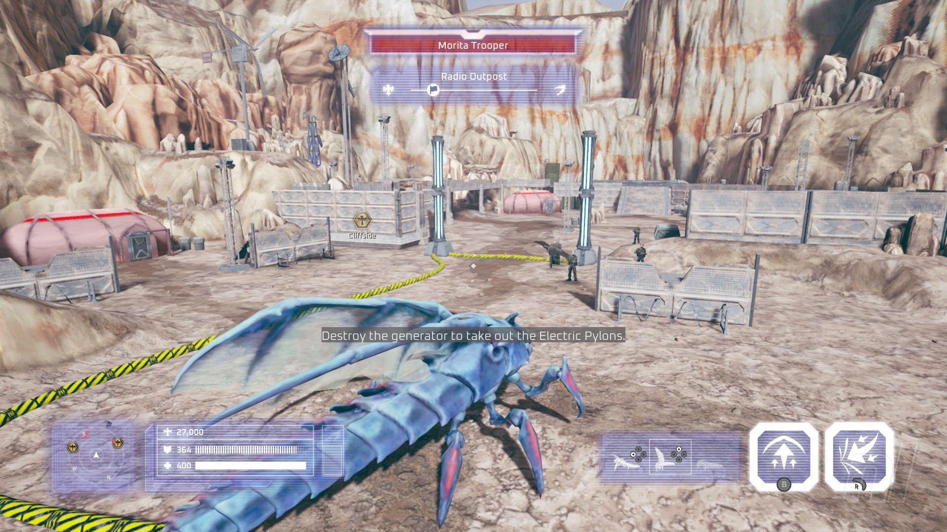 After you’ve finished orientation in a very familiar round of capture the flag, Johnny and Sammy send you to Klandathu to experience a recreation of the first bug offensive. You play as Sammy, taking down objectives across an open map swarming with bugs and your fellow troopers. After Big K, you visit key locations in the conflict and follow a story similar to that of the original film. Don’t expect any heavyweight narrative moments in-mission; most of the good writing is packed into those FedDev broadcasts.
