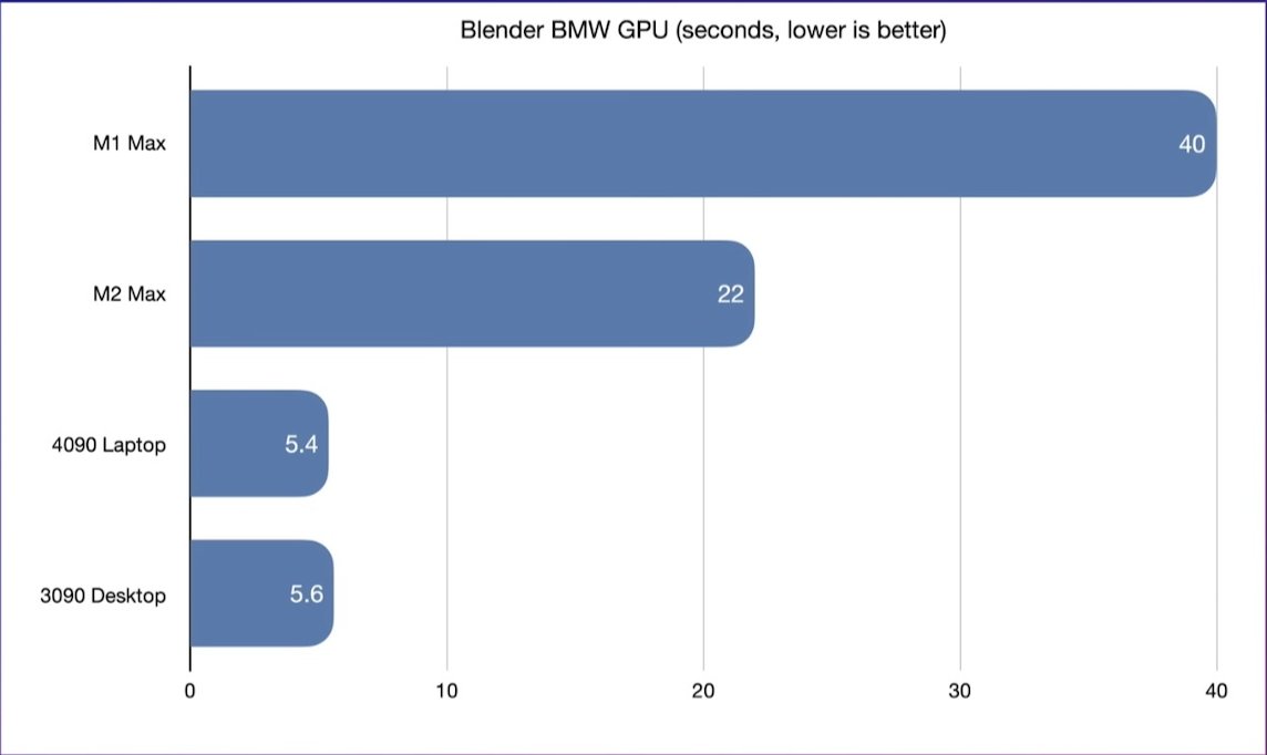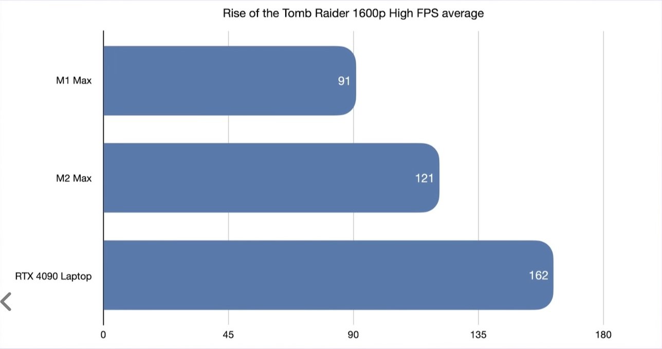 As for various games compatible with both systems, as you might expect, the RTX 4090 is optimized for gaming demands and handily beats the M2 Max’s 32-core on-chip GPU.