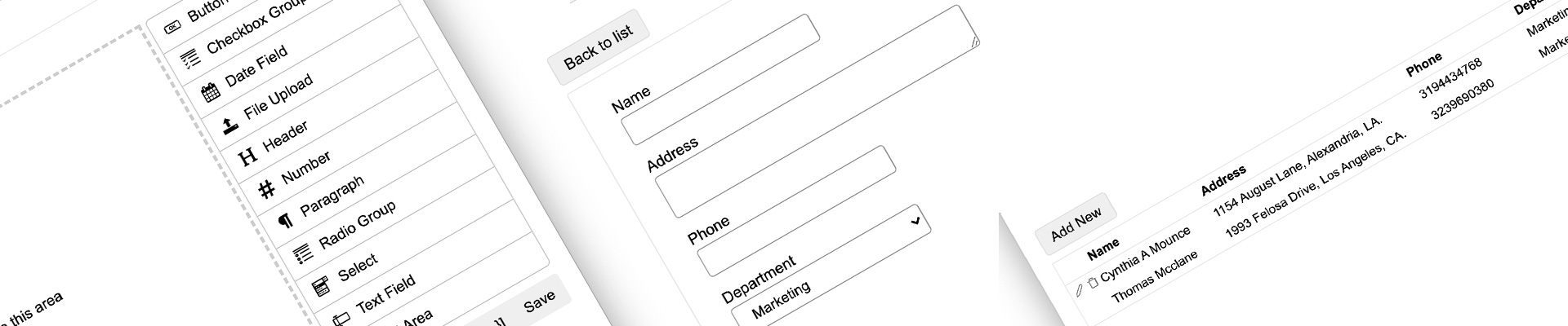 Smooth responsive interface to build form. It has tools menu and options to add, edit, delete and reorder form fields.