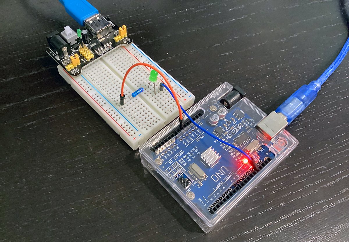 Now that you’ve seen how to blink your Arduino’s LED, we’ll use one final, slightly more complex example: we’ll use a third-party UNO breakout board and an external traffic light sensor board to simulate a three-color traffic stop light.