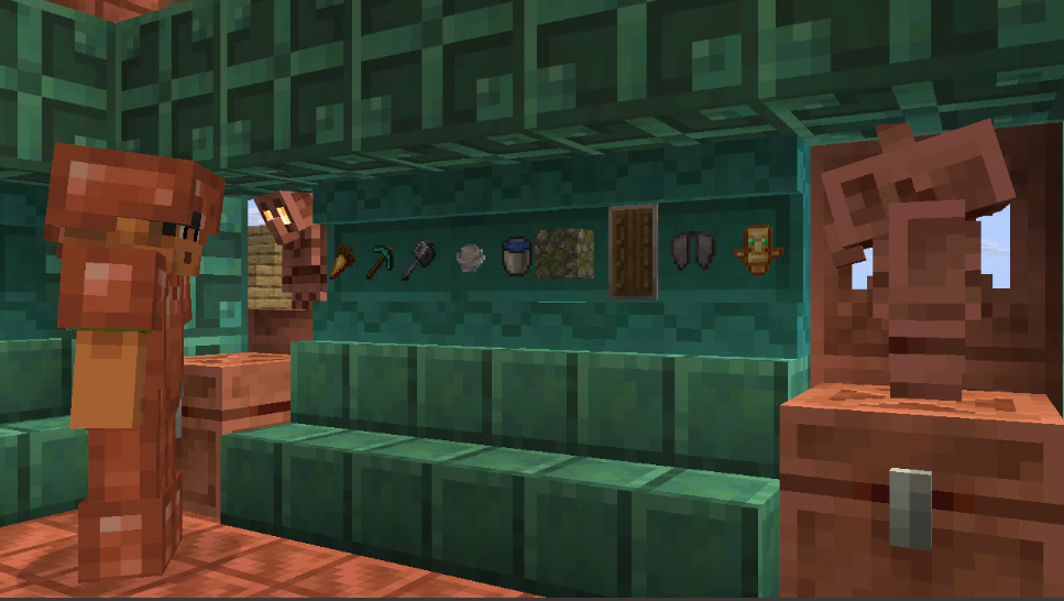 Copper chests are a new block! Summon a copper golem to get your first copper chest, which you can leave to oxidize, or keep pristine with wax. Drop items into a copper chest, and then sit back and relax as your copper golem sorts them into normal chests around your base!