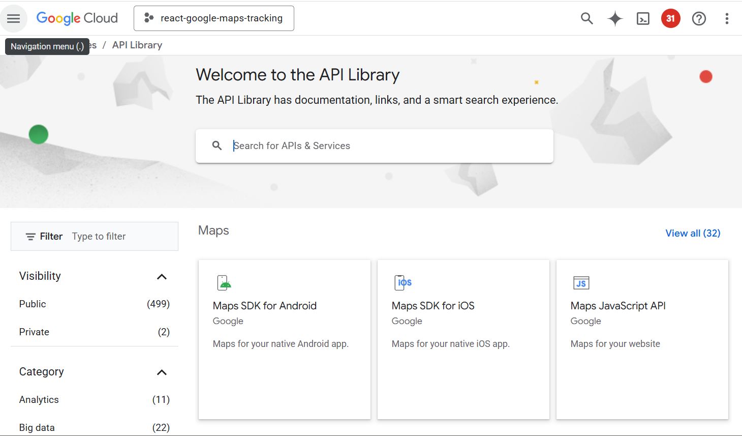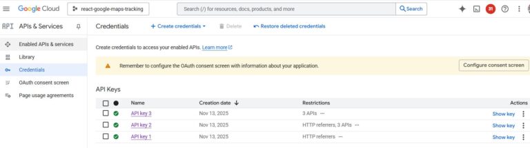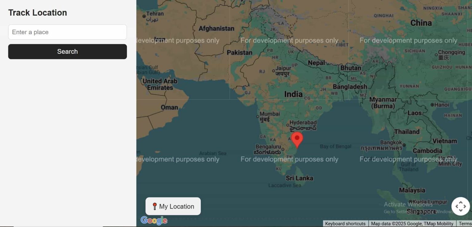[Tut] Integrate Google Maps in React for Real-Time Location Tracking - xSicKxBot - 12-11-2025 [Tut] Integrate Google Maps in React for Real-Time Location Tracking <div style="margin: 5px 5% 10px 5%;"><img src="https://www.sickgaming.net/blog/wp-content/uploads/2025/12/integrate-google-maps-in-react-for-real-time-location-tracking.jpg" width="550" height="288" title="" alt="" /></div><div><div class="modified-on" readability="7.1489361702128"> by <a href="https://phppot.com/about/">Vincy</a>. Last modified on November 28th, 2025.</div> <p>Integrating Google Maps into a React app is a powerful location-based feature. It helps for live user tracking to delivery routes, geo-fencing, and real-time movement progression. It is one of the simplest jobs with the help of the Google Maps JavaScript API and React libraries.</p> <p>Real-time location tracking improves the usability of your apps. It can be implemented for <a href="https://phppot.com/react/react-dynamic-dashboard-tutorial/">dashboards</a>, for tracking location on Duty, or anything that involves dynamic location-based requirements.</p> <p>This React example helps to integrate Google Maps into React. It <a href="https://phppot.com/php/how-to-draw-path-on-map-using-google-maps-direction-api/">renders dynamic maps to the UI</a> and displays markers to pinpoint the live location. It continuously updates the user’s position using the browser’s Geolocation API.</p> <p><img decoding="async" loading="lazy" class="alignnone size-large wp-image-24737" src="https://phppot.com/wp-content/uploads/2025/11/react-google-maps-realtime-location-tracking-550x288.jpeg" alt="React Google Maps Realtime Location Tracking" width="550" height="288" srcset="https://phppot.com/wp-content/uploads/2025/11/react-google-maps-realtime-location-tracking-550x288.jpeg 550w, https://phppot.com/wp-content/uploads/2025/11/react-google-maps-realtime-location-tracking-300x157.jpeg 300w, https://phppot.com/wp-content/uploads/2025/11/react-google-maps-realtime-location-tracking-768x402.jpeg 768w, https://phppot.com/wp-content/uploads/2025/11/react-google-maps-realtime-location-tracking.jpeg 1200w" sizes="auto, (max-width: 550px) 100vw, 550px"></p> <h2>Google Maps Integration steps</h2> <p>These are the few steps to enable required Google API services and <a href="https://phppot.com/php/how-to-get-google-recaptcha-site-and-secret-key/">configure the key credentials</a> with the React App. This process builds a channel between the enduser and the Google cloud services for which they are registered with.</p> <p><img decoding="async" loading="lazy" class="alignnone size-large wp-image-24652" src="https://phppot.com/wp-content/uploads/2025/11/google-cloud-Api-library-services-550x323.jpg" alt="google cloud api library services" width="550" height="323" srcset="https://phppot.com/wp-content/uploads/2025/11/google-cloud-Api-library-services-550x323.jpg 550w, https://phppot.com/wp-content/uploads/2025/11/google-cloud-Api-library-services-300x176.jpg 300w, https://phppot.com/wp-content/uploads/2025/11/google-cloud-Api-library-services-768x451.jpg 768w, https://phppot.com/wp-content/uploads/2025/11/google-cloud-Api-library-services.jpg 1460w" sizes="auto, (max-width: 550px) 100vw, 550px"></p> <ol> <li>Login with <a href="https://developers.google.com/" target="_blank" rel="noopener">Google Cloud Console</a> and create a new project.</li> <li>Choose <strong>APIs and Services</strong> and enable <strong>Maps JavaScript API</strong>.</li> <li>Go to <strong>Credentials</strong> menu and <strong>CREATE CREDENTIALS -> API Key</strong> to generate API key.</li> <li>Install <strong>React Google Maps</strong> library in your app using <code>npm install @react-google-maps/api</code>.</li> <li>Configure this key to your React app when loading <strong>React Google Maps</strong> JS library.</li> </ol> <p>The credentials page shows the list of API keys generated. You can restrict the keys for specific domains or for using particular Google API services.</p> <p><img decoding="async" loading="lazy" class="alignnone size-large wp-image-24656" src="https://phppot.com/wp-content/uploads/2025/11/google-cloud-api-credential-550x154.jpg" alt="google cloud api credential" width="550" height="154" srcset="https://phppot.com/wp-content/uploads/2025/11/google-cloud-api-credential-550x154.jpg 550w, https://phppot.com/wp-content/uploads/2025/11/google-cloud-api-credential-300x84.jpg 300w, https://phppot.com/wp-content/uploads/2025/11/google-cloud-api-credential-768x215.jpg 768w, https://phppot.com/wp-content/uploads/2025/11/google-cloud-api-credential-1536x429.jpg 1536w, https://phppot.com/wp-content/uploads/2025/11/google-cloud-api-credential.jpg 1865w" sizes="auto, (max-width: 550px) 100vw, 550px"></p> <h2>Rendering Google Maps with current location</h2> <p>The <code>TrackLocation</code> JSX shows HTML components for displaying the Google Map and a location search option.</p> <p>If the location search is not applied, it is showing the <a href="https://phppot.com/php/adding-custom-markers-on-map-using-google-maps-javascript-api/">marker on the users current location</a>.</p> <p><img decoding="async" loading="lazy" class="alignnone size-large wp-image-24661" src="https://phppot.com/wp-content/uploads/2025/11/react-google-map-landing-page-550x265.jpg" alt="react google map landing page" width="550" height="265" srcset="https://phppot.com/wp-content/uploads/2025/11/react-google-map-landing-page-550x265.jpg 550w, https://phppot.com/wp-content/uploads/2025/11/react-google-map-landing-page-300x144.jpg 300w, https://phppot.com/wp-content/uploads/2025/11/react-google-map-landing-page-768x370.jpg 768w, https://phppot.com/wp-content/uploads/2025/11/react-google-map-landing-page-1536x740.jpg 1536w, https://phppot.com/wp-content/uploads/2025/11/react-google-map-landing-page.jpg 1904w" sizes="auto, (max-width: 550px) 100vw, 550px"></p> <p class="code-heading"><code>src/components/TrackLocation.jsx</code></p> <pre class="p